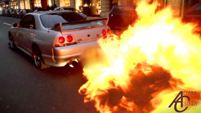 動画 まるで火炎放射 日産スカイラインのアフターファイアーに注目